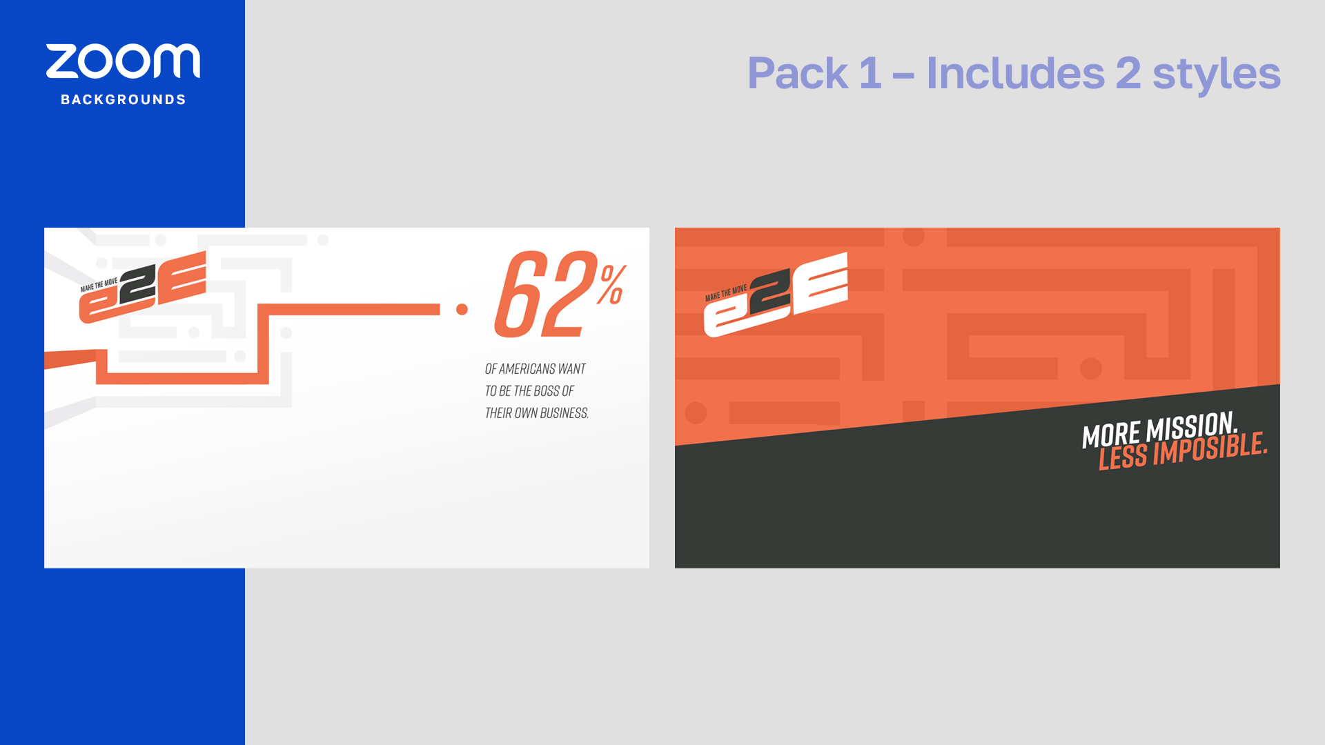 Download and show off your e2E graphics on your ZOOM calls with this pack of 2 styles to choose from: