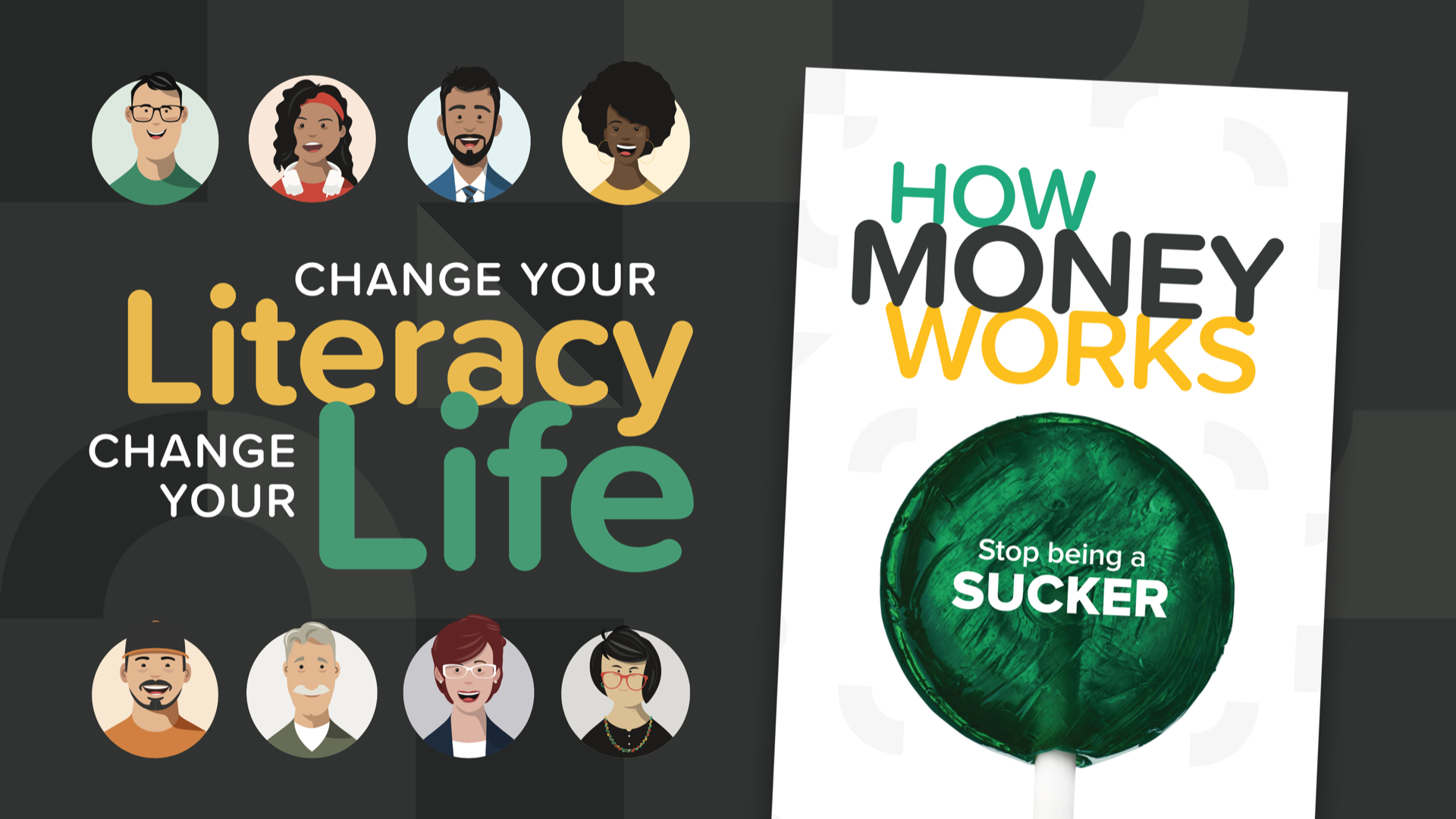 Download the artwork for our HowMoneyWorks Original Book Banner with the title "Change Your Literacy, Change Your Life"