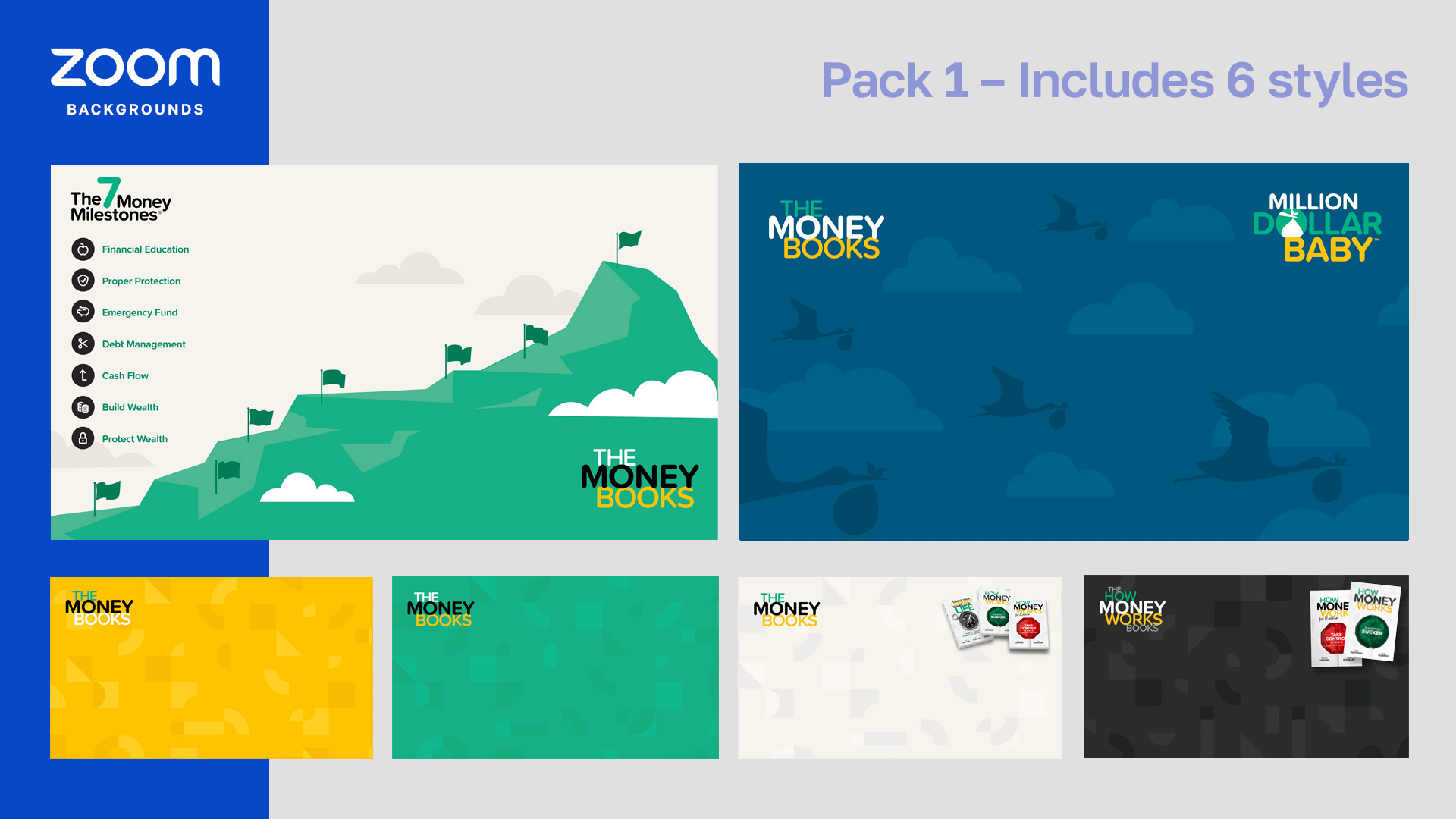 Download and show off The HowMoneyWorksBooks graphics on your ZOOM calls with this pack of 6 styles to choose from.