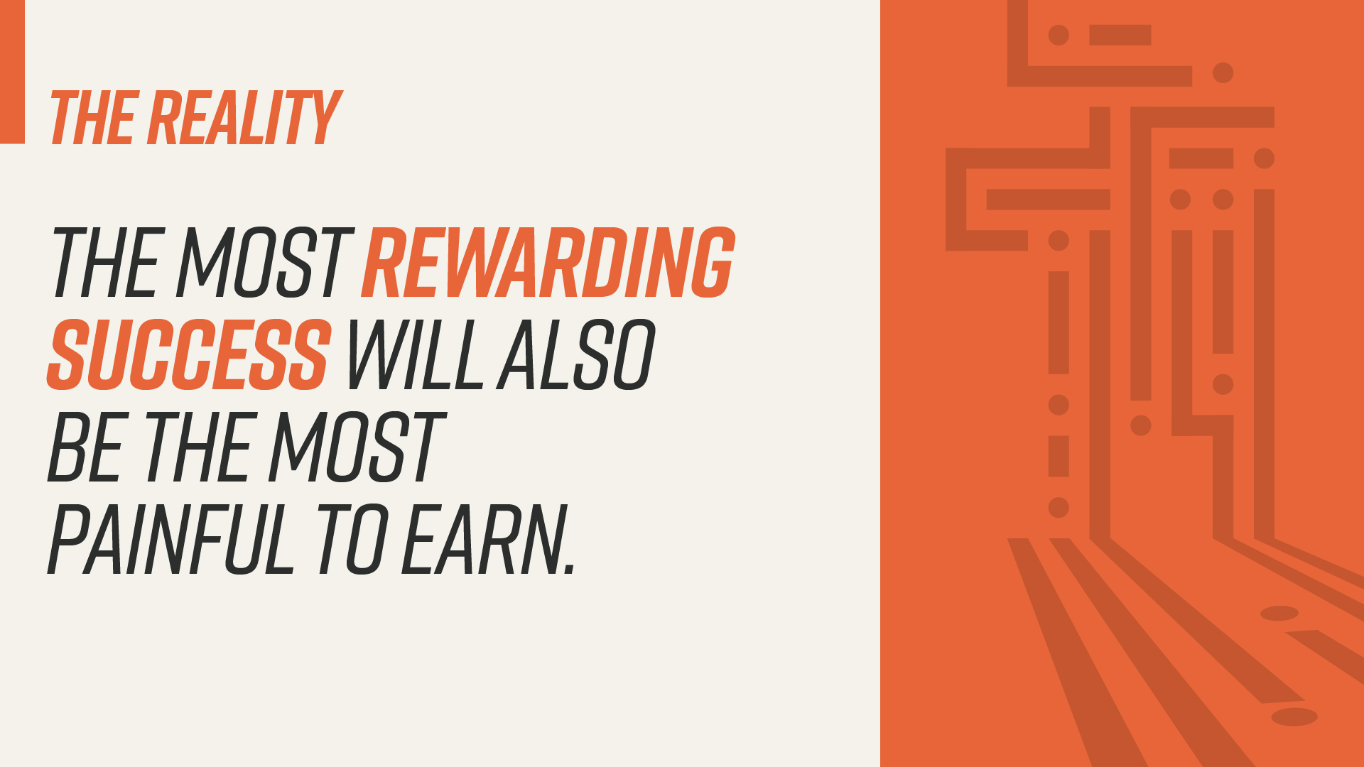 Speaking of being realistic—our next essential to face is the REALITY. I'm going to put this bluntly. Becoming a successful entrepreneur is going to hurt… a lot. If you want to earn the rewarding, lasting, freeing success that owning a business can provide—you're going to have to be tough. That's the REALITY, but it can also be absolutely worth it. Just know—it IS going to be hard.