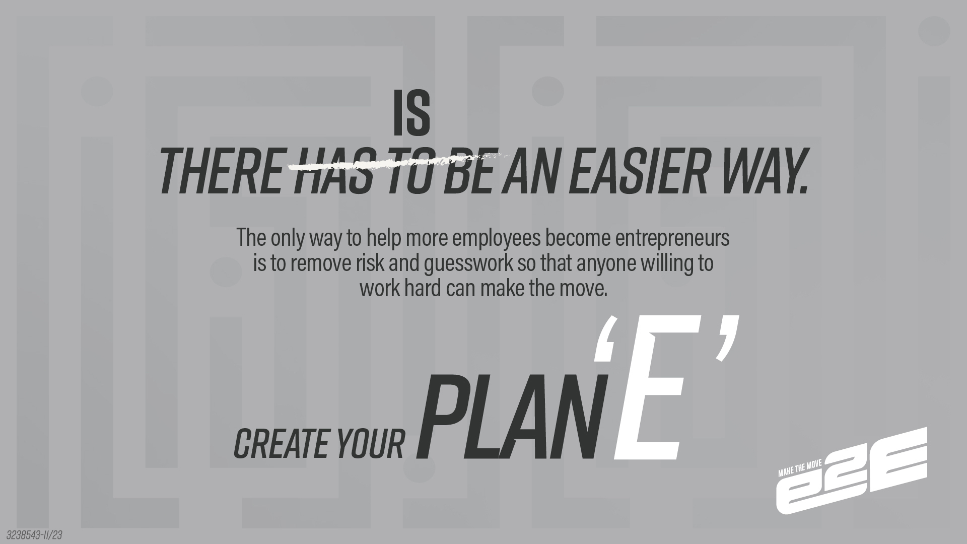 If you were born to be an entrepreneur—a free business leader—I'm here to tell you today on behalf of all my fellow e2E advocates… There is an easier way. You can make the move. If you're ready, then we're available to help you plot your escape and plan your success. Reach out to an e2E advocate directly after this presentation to get started. Thank you.
