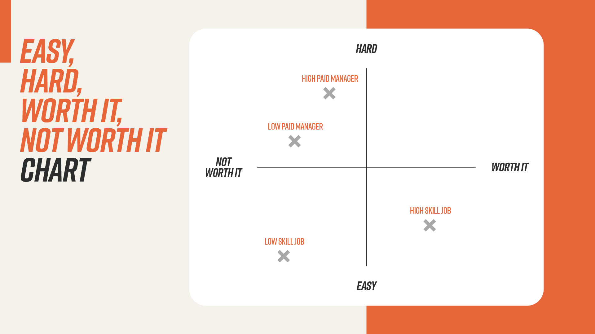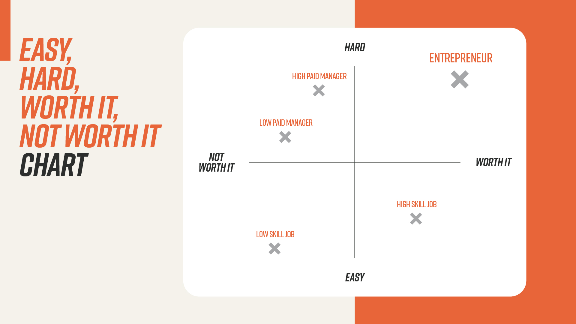 How hard and worth it is being an entrepreneur compared to other opportunities? Let's chart it. Easy is at the bottom—hard is at the top. "Not worth it" is on the left— "Worth it" on the right.