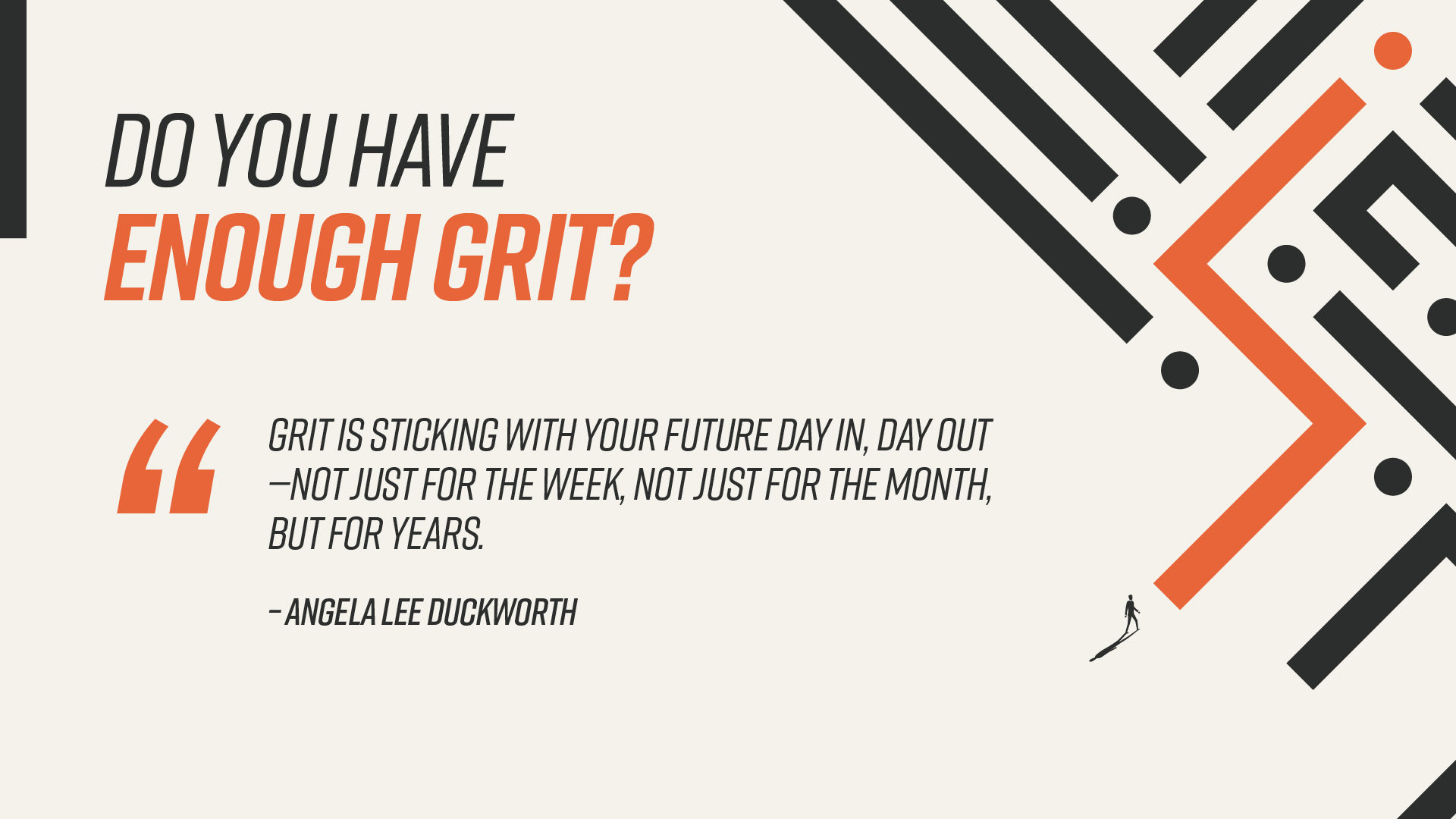 You've heard me use the term, 'grit' today. Grit is sticking with your future day in, day out—not just for the week, not just for the month, but for years. This is perhaps the chief quality that determines who persists or who quits, who succeeds or who fails. Grit can't be taught or bought. But it is something you must possess if you're going to overcome the chasm.