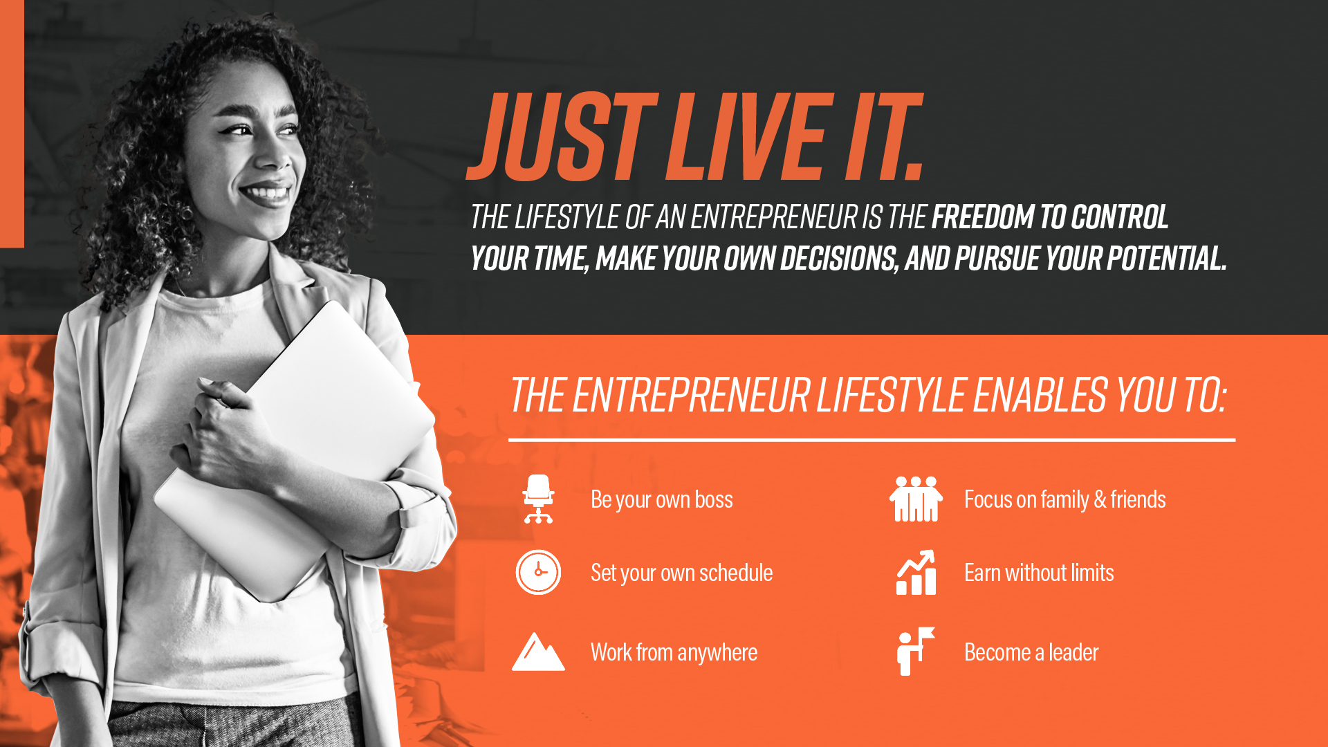 My final challenge to you… Just live it! Being an entrepreneur is about breaking free—no excuses—no looking back. Own the freedom to be your own boss, set your schedule, work from anywhere, focus on your loved ones, remove limits, and become the leader you were meant to be!