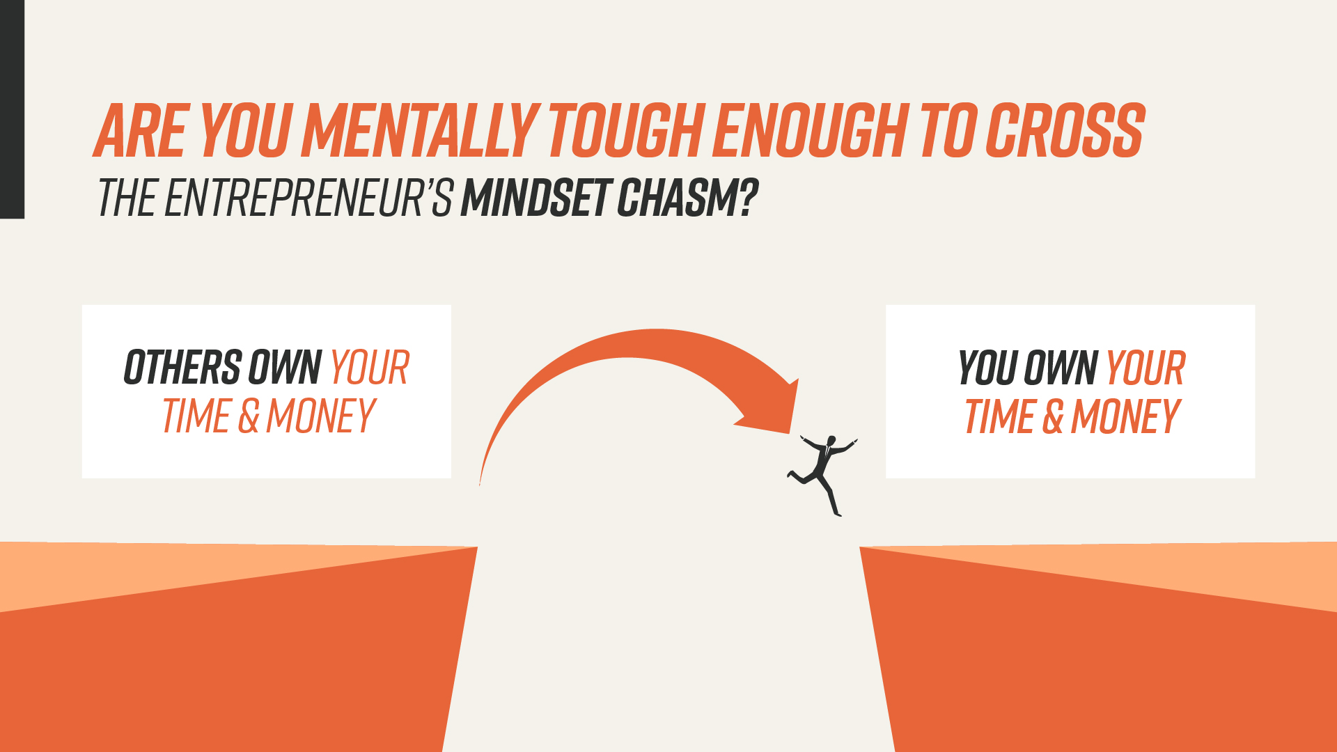 This is the mindset of the entrepreneur—especially when starting out. We are WILLING to make these sacrifices because we believe it will be absolutely worth it in the future—for ourselves and our families. To earn the life you want—to cross the divide from others owning your time and money to YOU owning it—you have to become mentally tough.