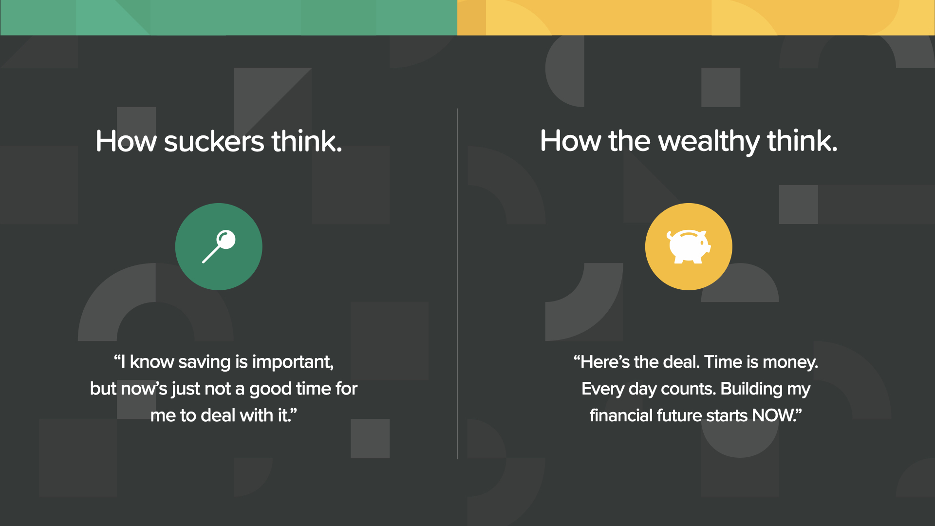 Sucker-minded people never think it’s a good time to take care of this. The wealthy-minded always get started as soon as they can—which is NOW.