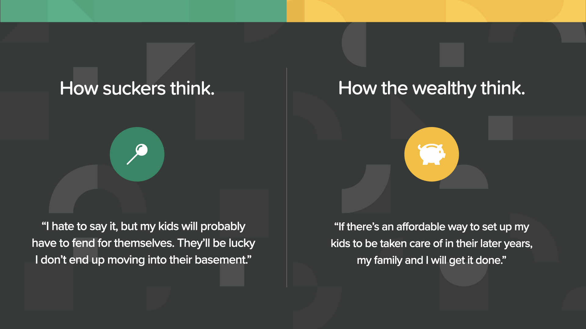 Once again, sucker-minded people leave it all to chance, while the wealthy-minded realize what a dream come true it would be to do that for their family.
