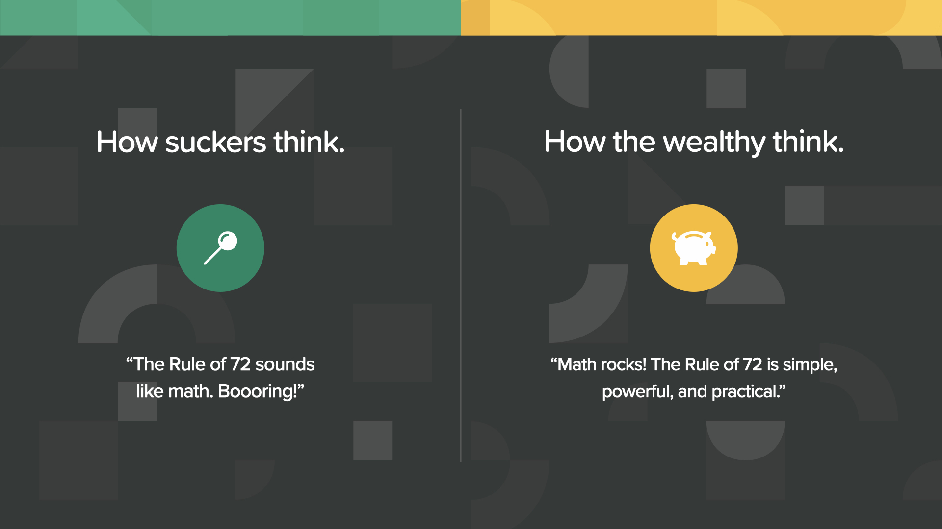 This is not the time to be sucker-minded. This is the time to apply the Rule of 72 to all your finances like wealthy-minded people do.