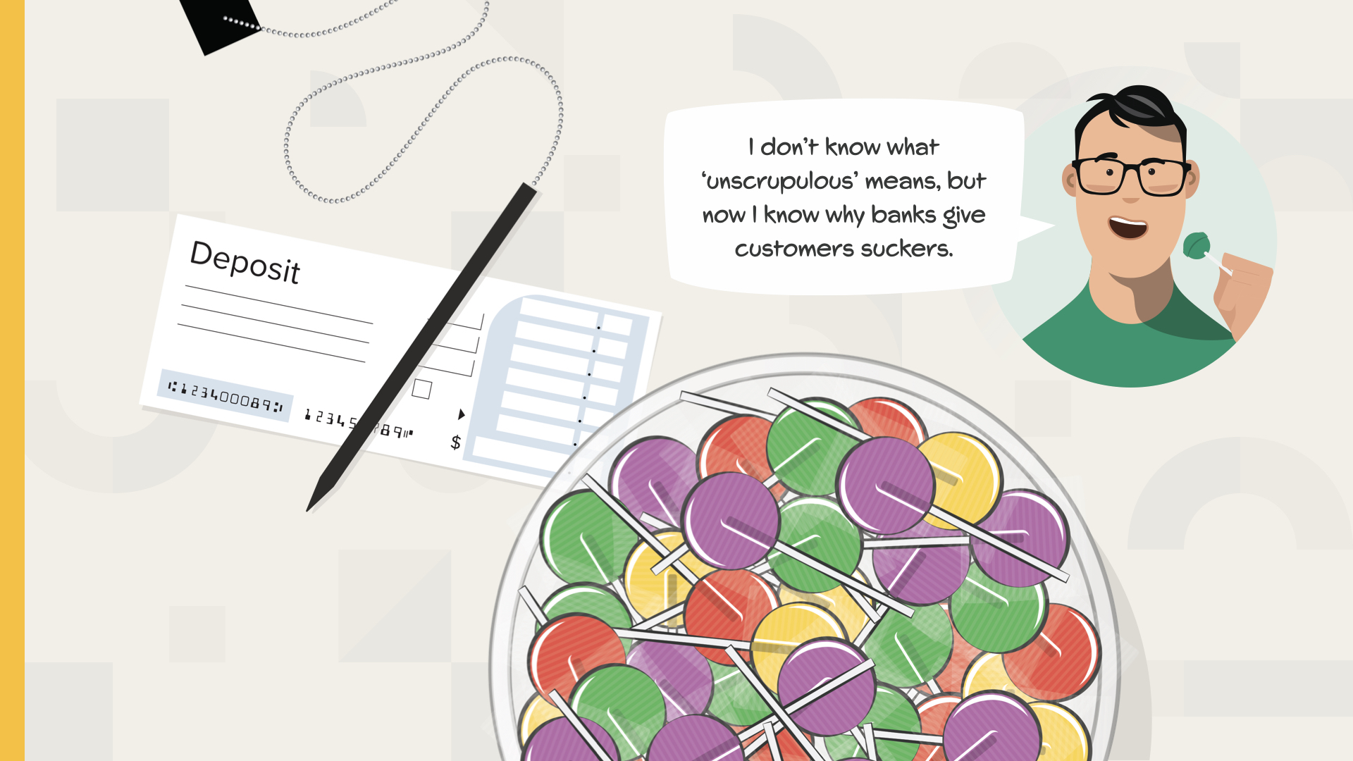 Of course, the bank will give you a lollipop for your trouble waiting in line to make a deposit. What brand is it usually? Yep—a Dum Dum. We can’t make this up. It’s like they’re trying to tell you, but you just don’t know the code.