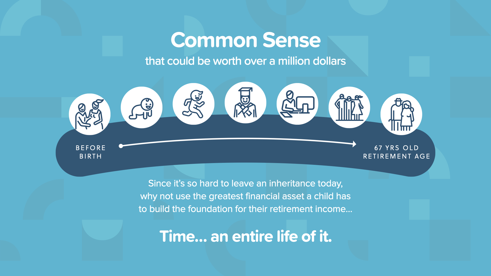 Now, let’s look at an example of something most parents dream about. If you have children—or plan to have children—you always want them to have it better than you. That’s natural. This example is a reimagining of how parents can leave a legacy for their kids. It’s a strategy that applies the Power of Compound Interest and the Time Value of Money in a way that makes the traditional end of life wealth transfer seem old fashioned and unnecessary. We call it, Million Dollar Baby.