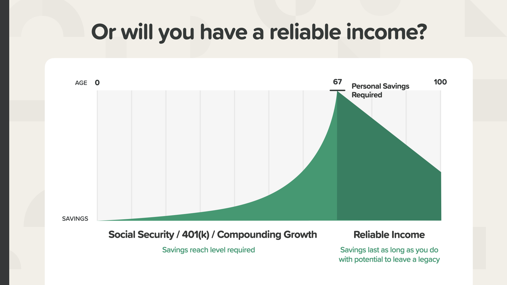 • Create a Predictable Income That Lasts and prevent the possibility of running out of money in retirement with an income stream you can count on