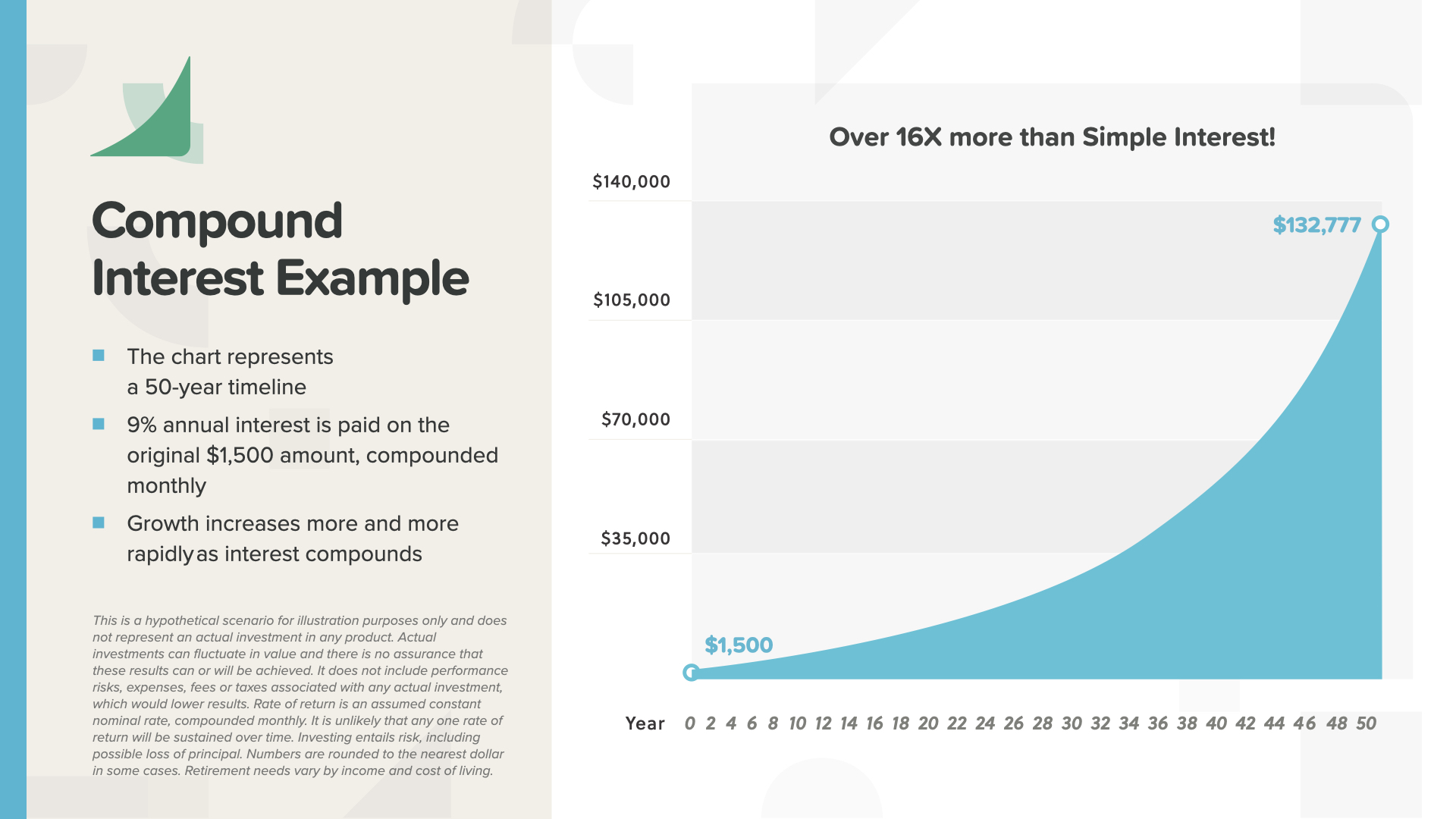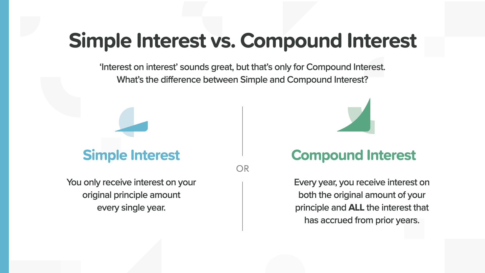 The difference between simple and compound interest is substantial. One stays the same, and one grows and grows.