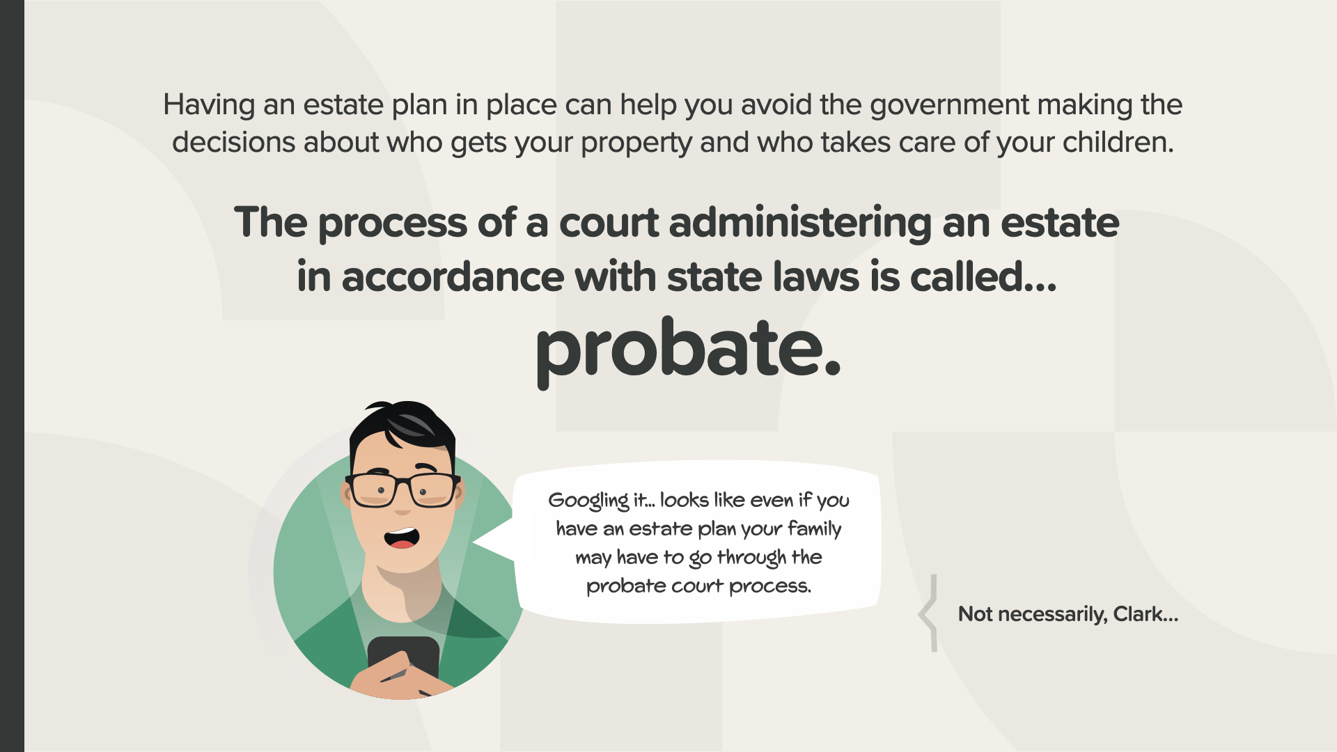Having an estate plan in place can help you avoid the government making the decisions about who gets your property and who takes care of your children. The process of a court administering an estate in accordance with state laws is called PROBATE. Nobody wants to go through that if they don’t have to. This is one of the most important reasons to put your estate plan in place right away.