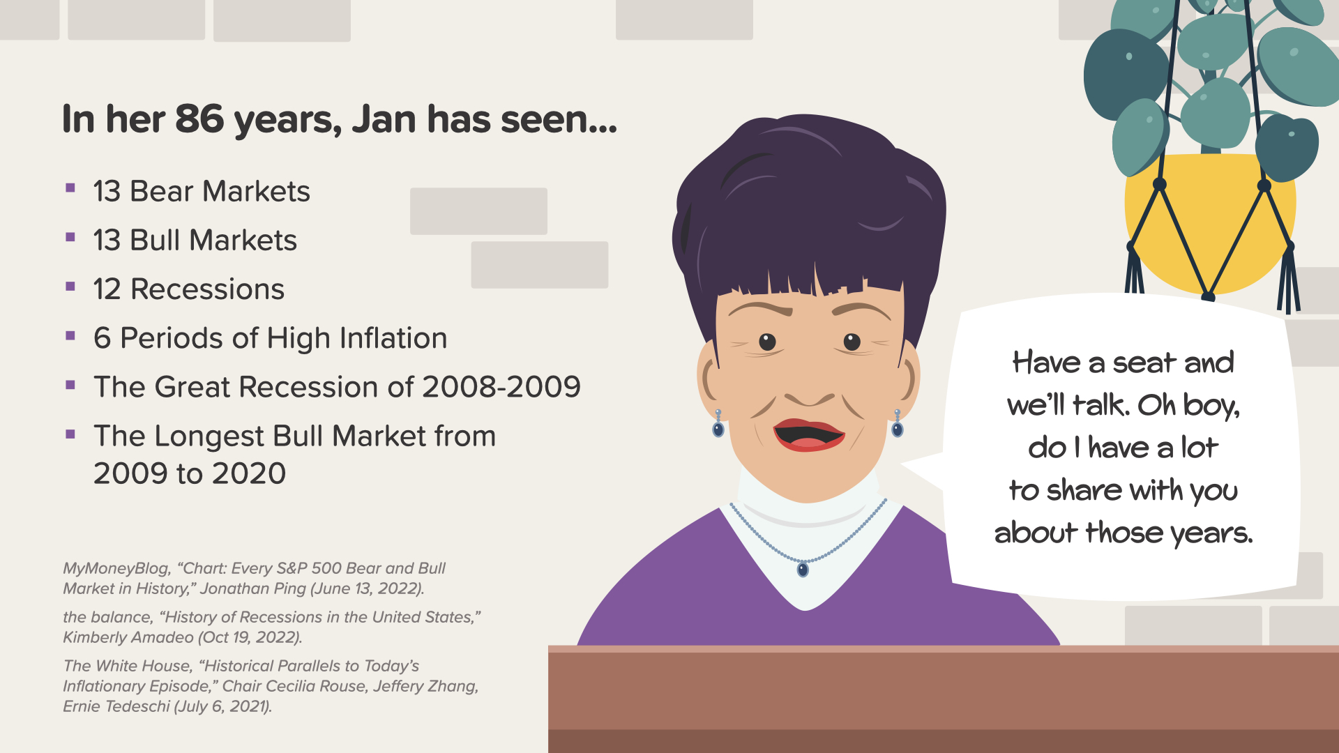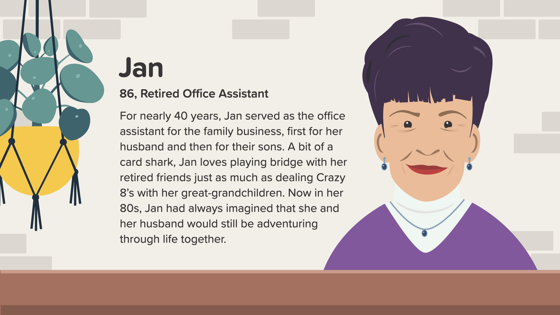 Jan is our last character in the book. She’s 86 and was a stay-at-home mom until her kids were in school. She then worked as an assistant for her husband and her sons after her husband retired. Jan was an equal participant in the family’s decision-making about money and always asked her questions. For Jan, her concerns are for the future generations of women in her family.