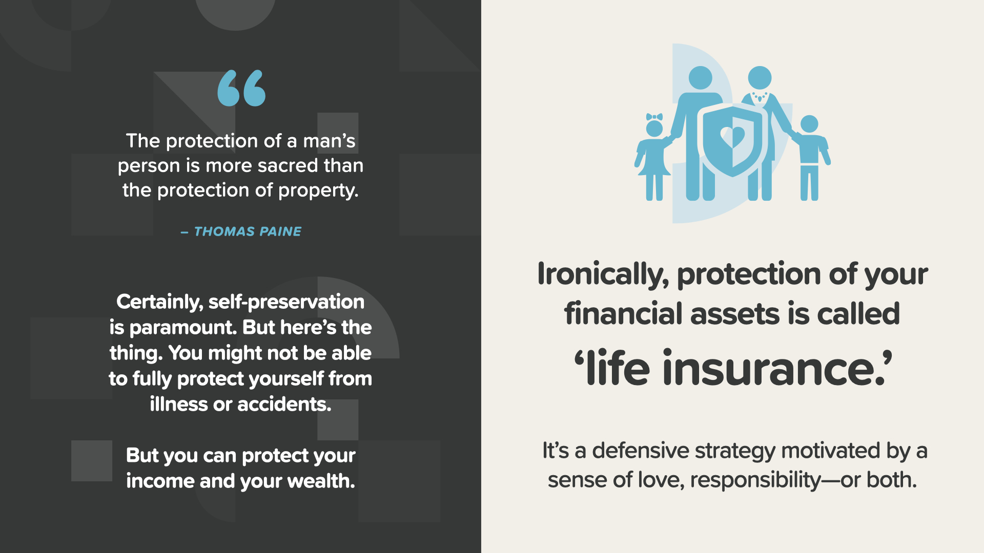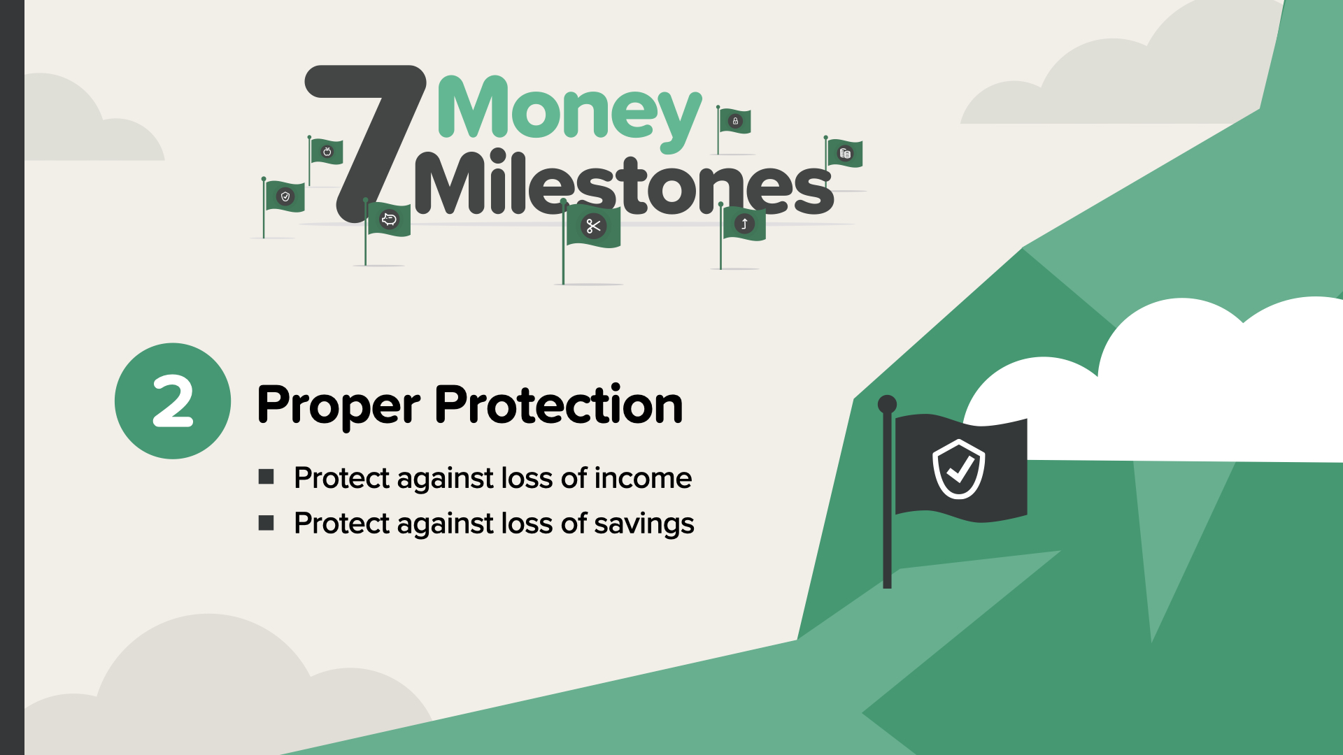 Though protecting yourself is more important than protecting your property—as Thomas Paine put it—you might not be able to fully protect yourself from illness or accidents. But you can protect your income and your wealth. Ironically, protection of your financial assets is called ‘life insurance.’ It’s a defensive strategy motivated by a sense of love, responsibility—or both. If you’re interested in joining one of our free classes to learn about the other Milestones, we’ll send you the link for the next one after this session.
