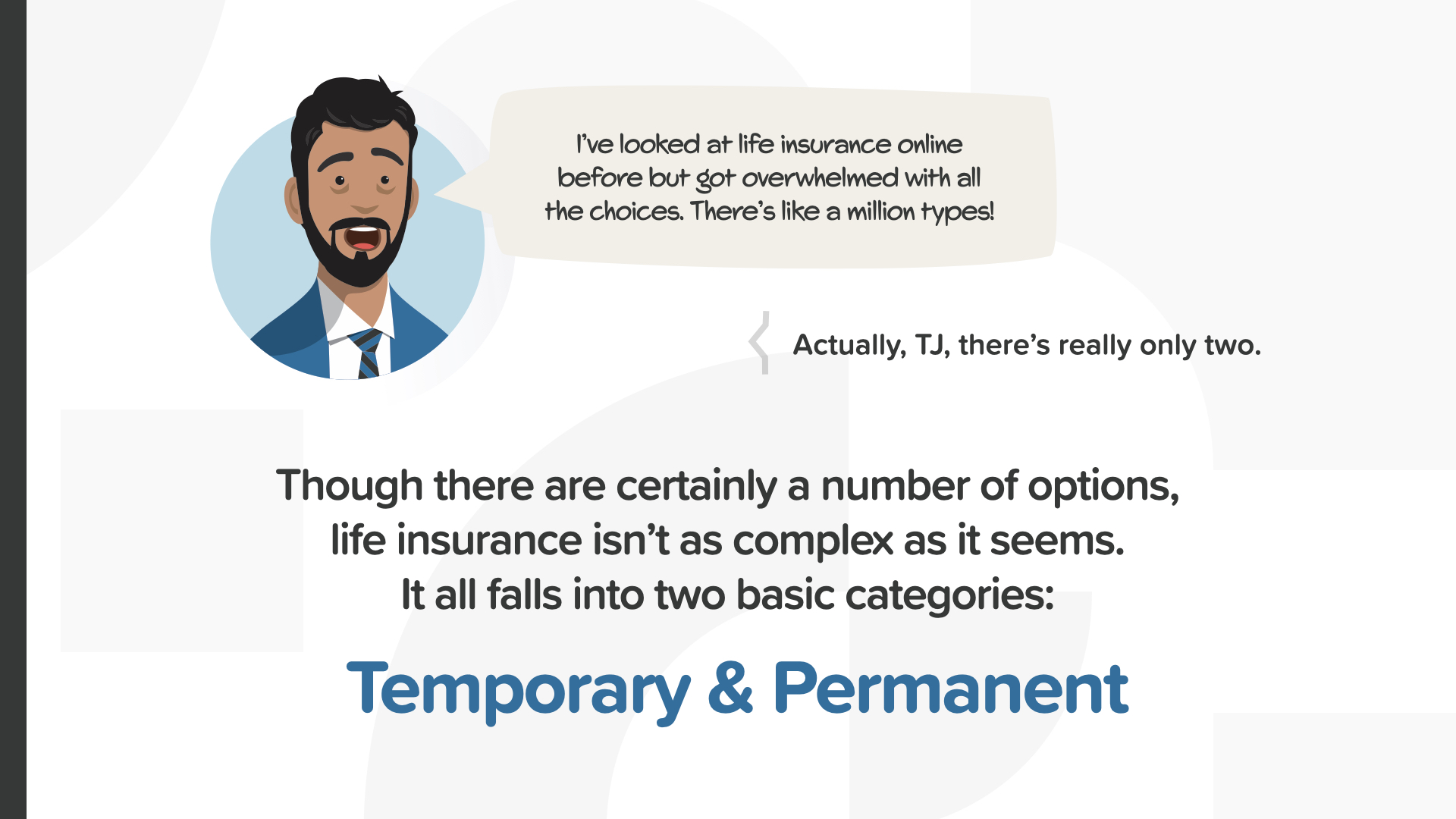 Just like with so many things, life insurance—with all the options out there—seems complex at first, but once you know a little, it becomes far simpler. To start, it’s important to understand that all life insurance usually falls into two basic categories: temporary & permanent.