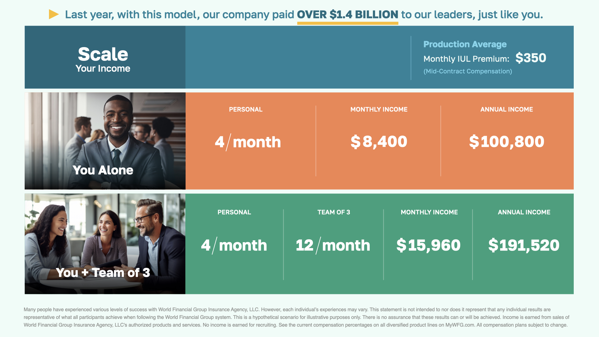 Last year, with this model, our company paid over 1.4 billion dollars to our leaders, just like you.
