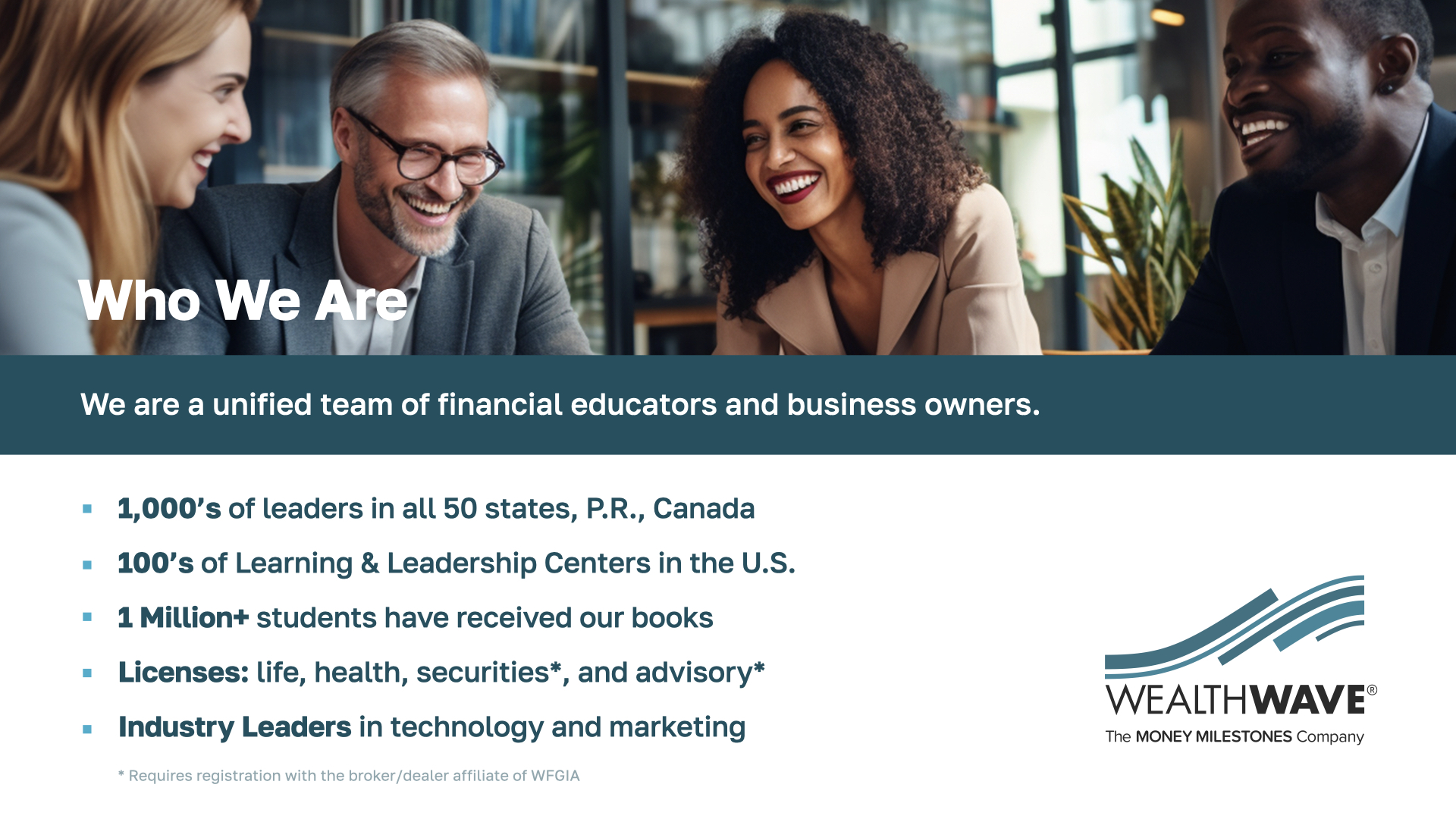 Our team has thousands of financial educators across the U.S., including all 50 states, Canada, and Puerto Rico. Our mission is clear: to eliminate financial illiteracy. We call our offices Learning and Leadership Centers, as we focus on the importance of education and service.