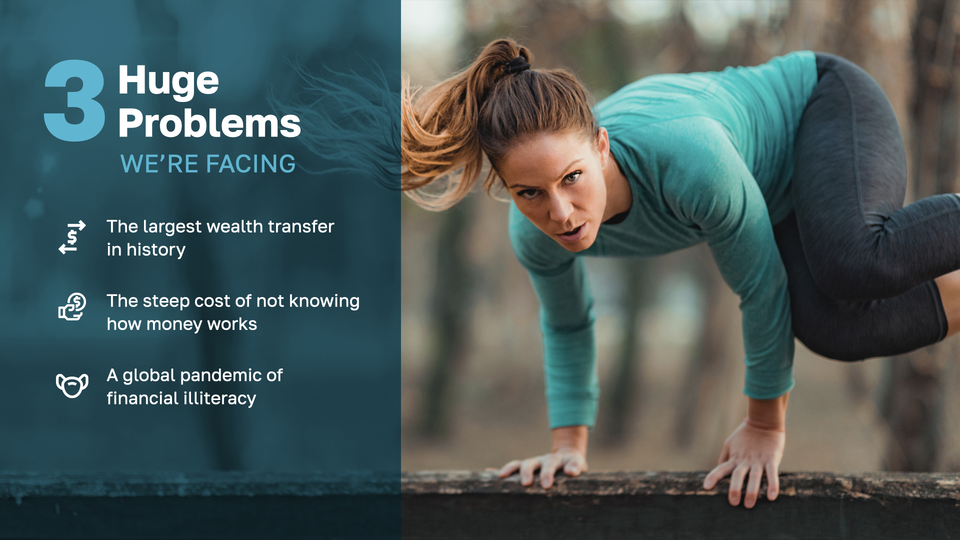 That leads us to PROBLEM #3. Financial illiteracy is an economic pandemic that crushes the hopes of achieving financial independence for billions across every country and community. And where will most people go to learn how money works? Not from a thick textbook written by academics for academics—and definitely not from school! Were YOU taught how money works in school?