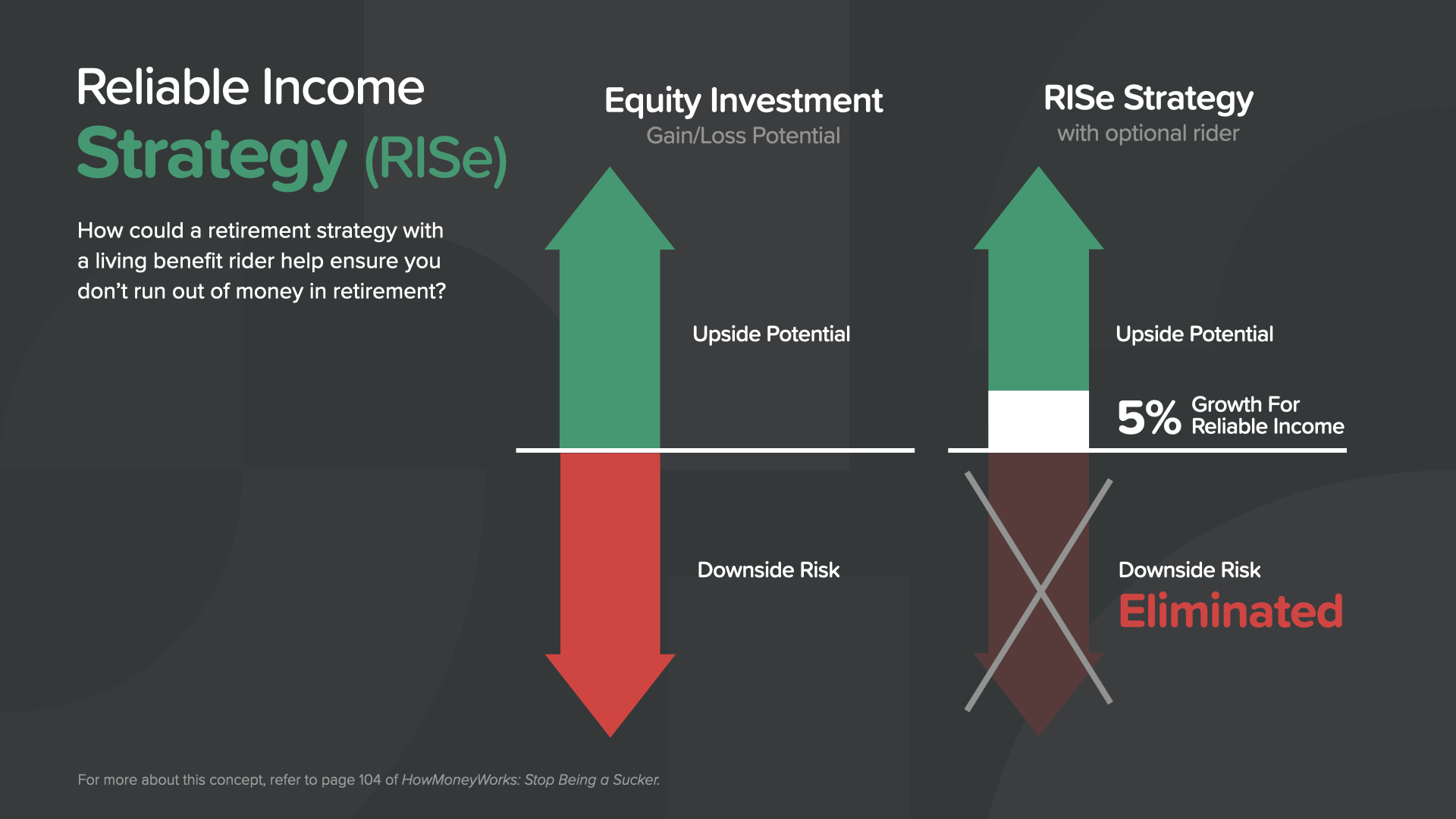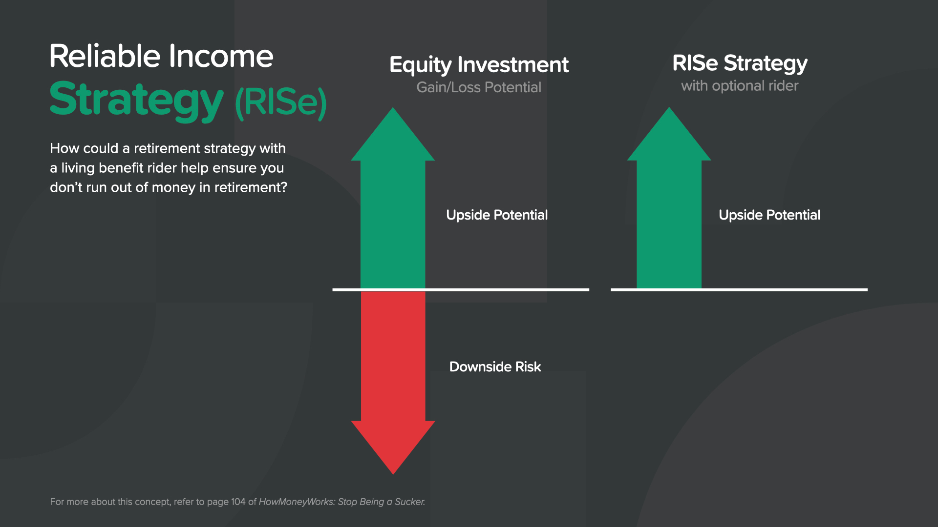 So here’s a potential solution for millions of Americans. We call it the Reliable Income Strategy or RISe. With RISe, when the market goes up, you’ve got the ability to participate in gains and grow your account.